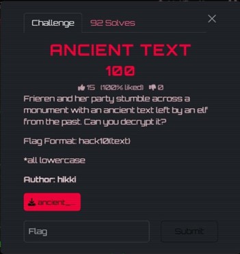 Frieren and her party stumble across a monument with an ancient text left by an elf from the past. Can you decrypt it?
