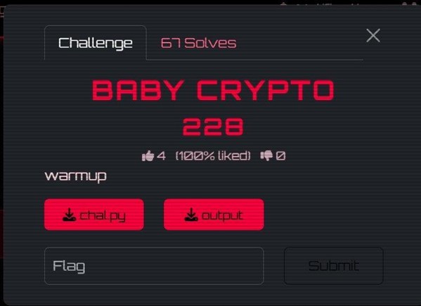 Baby Crypto SolveFLAG: hack10{a88dacd5fb88dc4973bb3a56fff9be940bb1f1b83c2b82f3f6daa256267c9786f4cdc70255079e3cfaea9956211e615fe78ee9d5a95a832afff2f09b05c39db4}