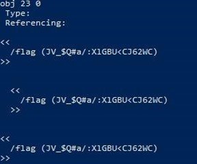 PDF Parser AnalysisObject 5 contains embedded JavaScript. There is also a separate /flag (...) object in the PDF, which looks suspicious.