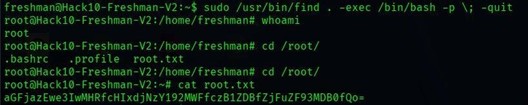 User freshman may run the following commands on Hack10-Freshman-V2: