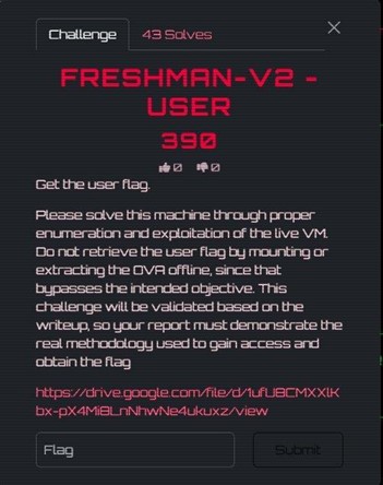 This continues from Freshman-V2 — User. We already have a shell as the freshman user.