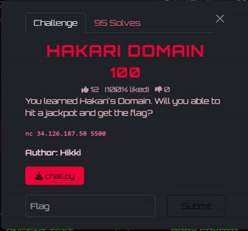 You learned Hakari's Domain. Will you be able to hit a jackpot and get the flag?