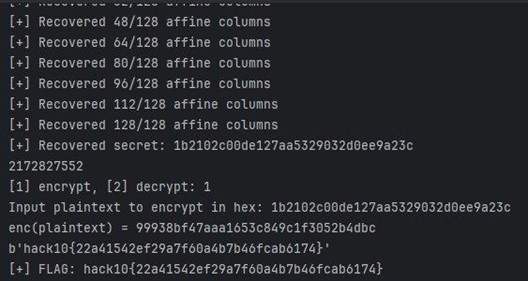 b = E(0), then queried on each of the 128 standard basis vectors. After 129 total queries, the full affine map was recovered.Step 5: Solve for the Secret and Get the Flag