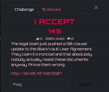The legal team just pushed a 50-clause update to the BlackVault User Agreement. They claim it's ironclad and that absolutely nobody actually reads these documents anyway. Prove them wrong.