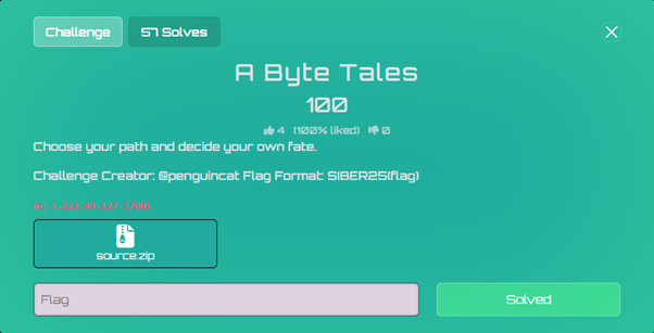 Byte Tales ChallengeThe challenge provides a Python-based interactive story game with source code.