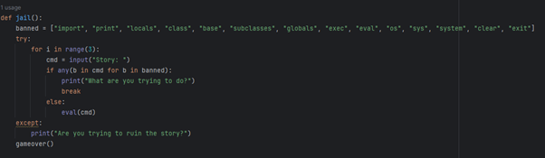 Jail Function- The jail() function accepts user input and passes it to eval()