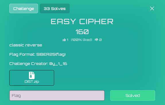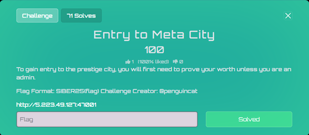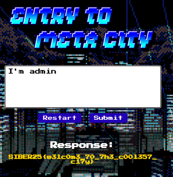 Flag ResultFLAG{SIBER25{w3lc0m3_70_7h3_c00l357_c17y}}