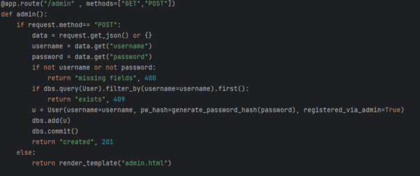 Analysis of the source code reveals that dashboard access is restricted to users who have been created through a special /admin endpoint. However, the HAProxy configuration explicitly denies all requests to paths beginning with /admin.