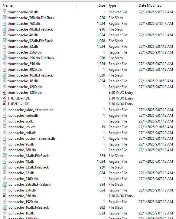 These Windows icon cache databases store thumbnail images of files at various resolutions (256x256 in this case). Additionally, these thumbnails can persist even after the original files are deleted.